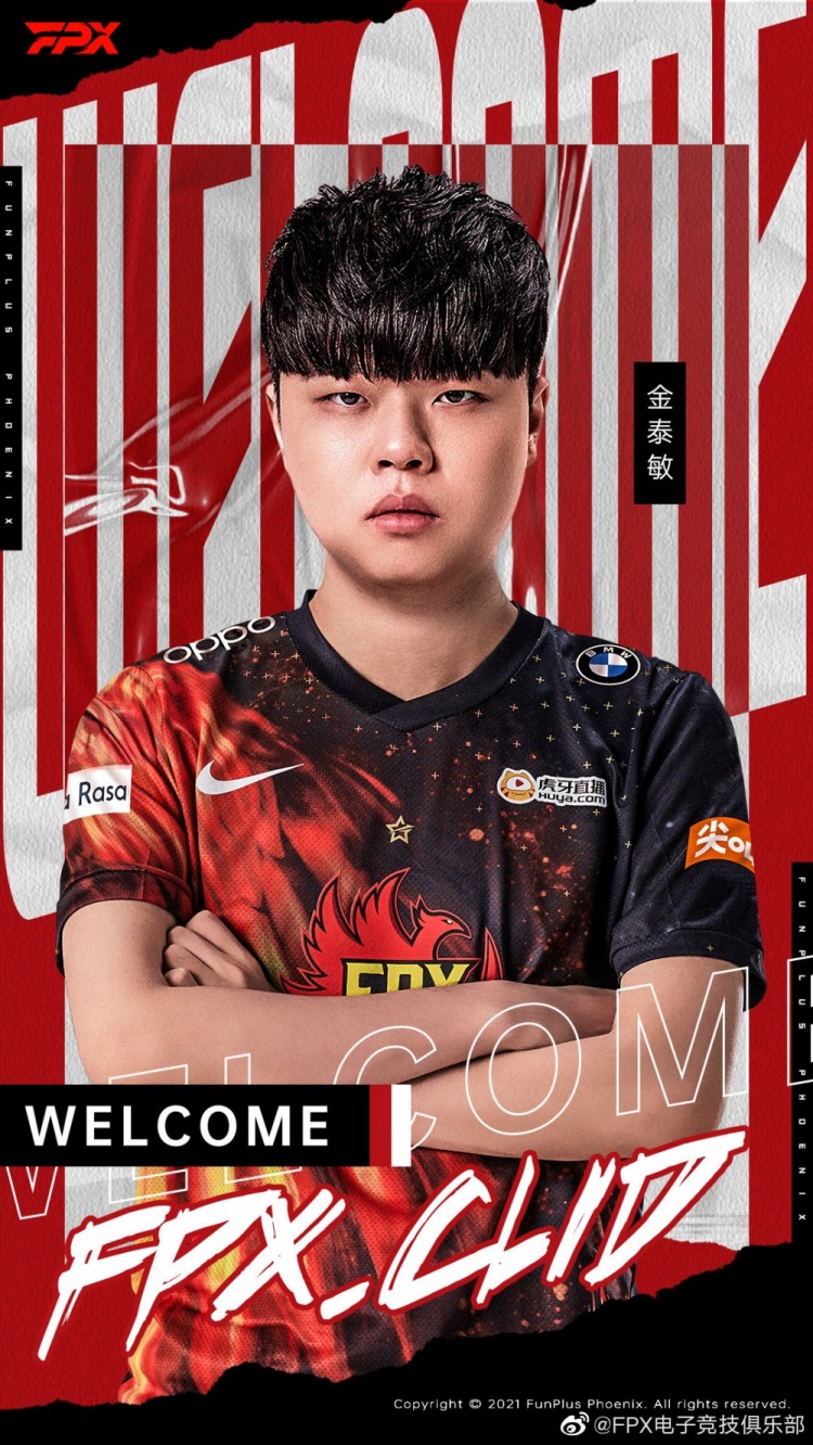 经过友好沟通协商,我们很高兴向大家宣布,原LCK赛区Gen.G电子竞技俱乐部英雄联盟分部打野选手金泰敏(ID: Clid)正式加入FPX电子竞技俱乐部英雄联盟分部,与小凤凰共同征战峡谷!