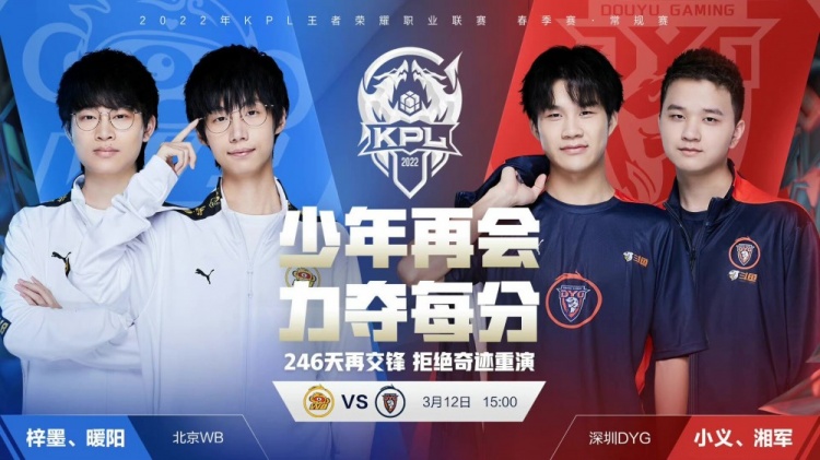直播吧3月12日讯 2022KPL第二轮第二周 本场比赛由北京WB对战深圳DYG