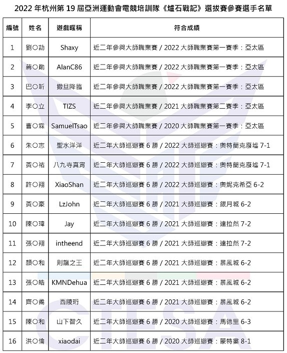 同时中国台湾省将放弃《Dota2》、《EA SPORTS FIFA》、《梦三国2》的项目。而未来几个月内将继续通过选拔赛决定本次将派出的选手名单。