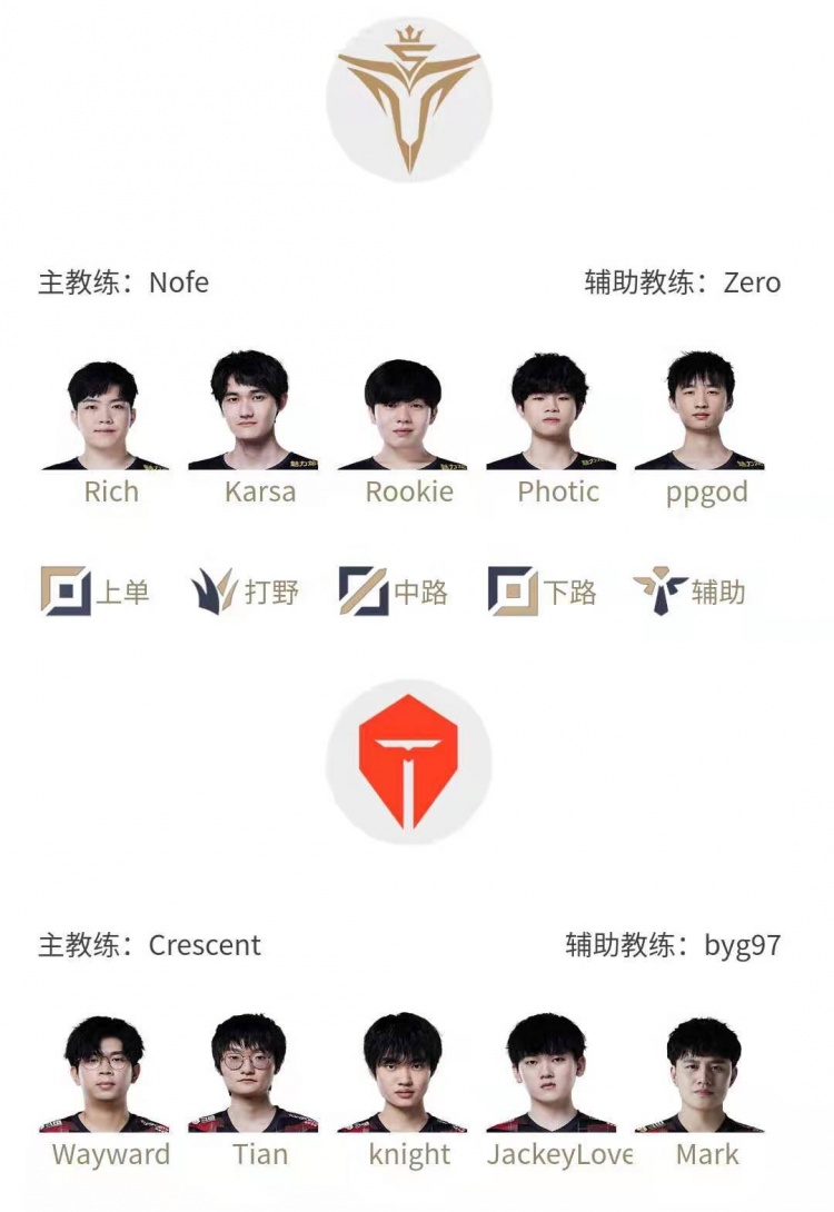 V5首发:上单Rich 打野Karsa 中路Rookie 下路Photic 辅助ppgod