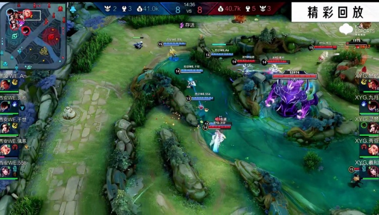 【19:10】双方中路开团,吕布互相跳大,千世不知火舞闪现进场被灵梦的火舞闪现拆伙,灵梦一套技能单杀秒掉千世。XYG打出完美团战一波0换5成功一波拆掉基地拿下比赛胜利。恭喜XYG成功晋级季后赛四强。
