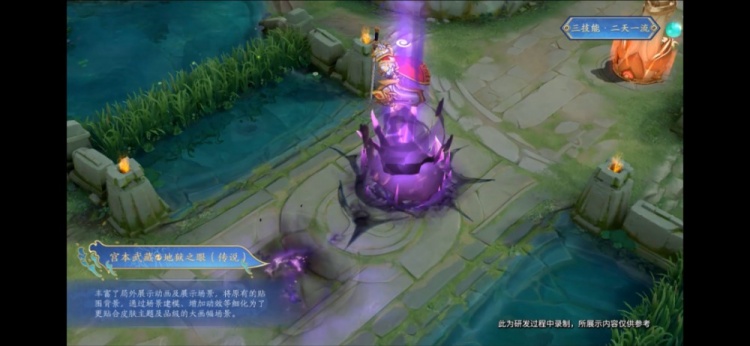重塑后的宫本依旧建议主走打野位:比赛开局利用好宫本永久存被动的机制,出门升二后立刻释放叠加一层被动,后续刷新再叠一层直接卡至两层,这样在buff刷新时宫本就有两层被动在手:40s就可打完第一个buff,较常规打野44s快了4s。