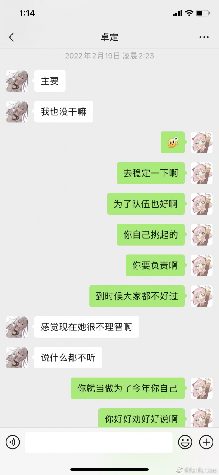 fenfen早年间在SN时期于粉丝群发布的一些言论