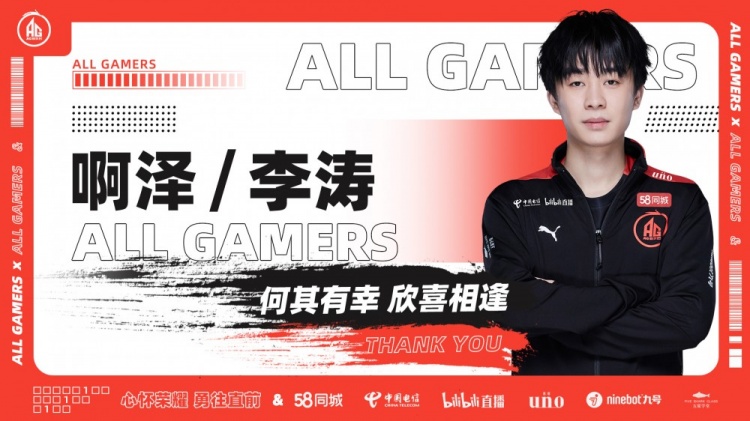 四年风雨相伴,感谢你为AG作出的所有付出与努力,今朝分别,但那些我们共同享受过的胜利,那些互相搀扶着爬起的低谷,那些一起并肩作战的日子将永远留存。少年无惧岁月长,彼方尚有荣光在,愿你在今后的征途中继续披荆斩棘,坚定无畏。前进吧,感激曾经有幸联手,期盼来日顶峰相聚。