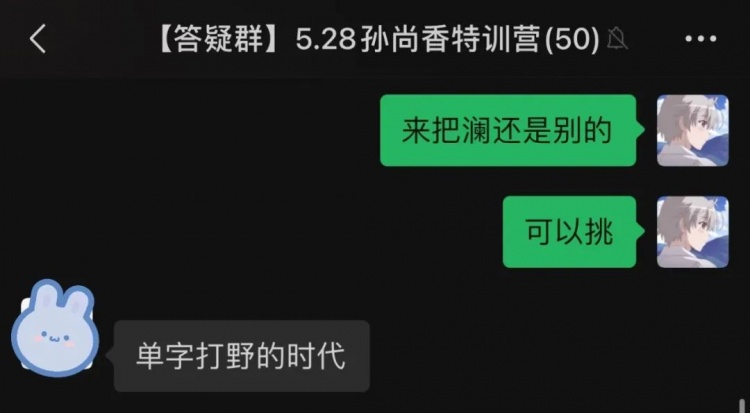 昨晚在开展孙尚香特训营带上分环节时,我打完曜后问大家想看什么打野,打算玩一局澜,这时有位学员了不禁感叹了句“单字打野的时代”。
