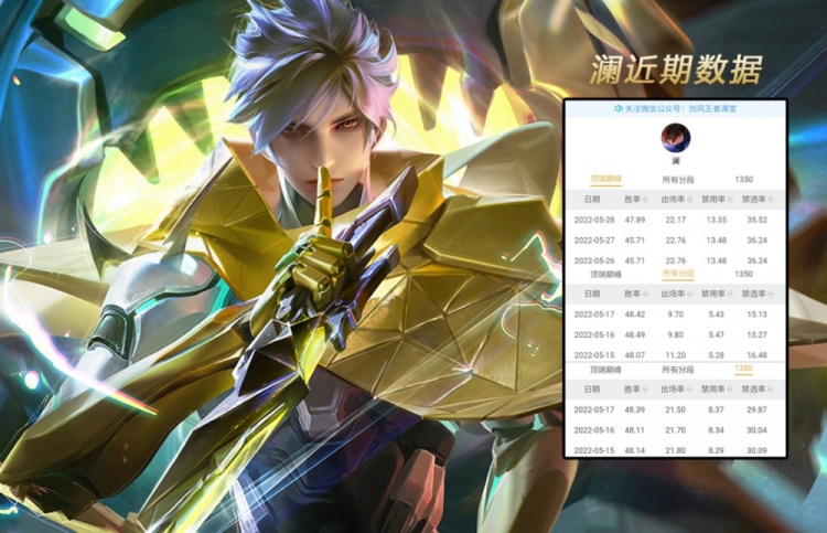 低分段中,澜因为吃操作以及对节奏的把控,所以在新人玩家手中,其强度反而没有铠、典韦等简单粗暴的英雄高,所以这也使得澜在低分段胜率仅有48%。