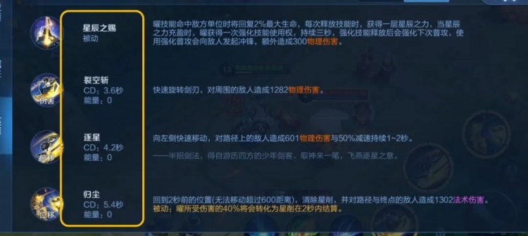 在满冷却时,曜一技能3.6秒,二技能4.2秒,三技能5.4秒,CD非常的短,在加上释放三次技能可获得强化普攻,让曜能够频繁的释放技能,通过拉扯风筝前排,适时找好大招落点反手秒C。