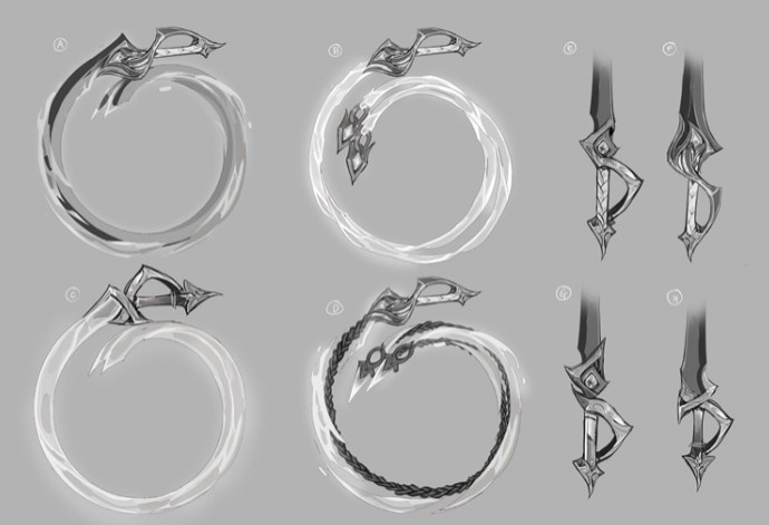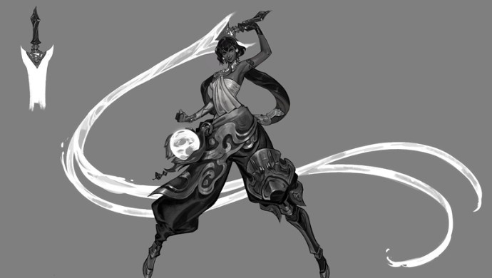 我们不希望忙了半天最后做出来的又是一个忧伤的艾欧尼亚剑客。所以我们的概念艺术家Nancy “Riot Sojyoo” Kim四处寻找能够满足要求的武器,最后在南亚发现了一种像鞭子一样有弹性的剑——印度鞭剑。而正好团队也想增加《英雄联盟》中能代表南亚的形象,这个发现恰逢其时。和莎弥拉、阿克尚或泽丽等英雄的制作初衷一样,我们希望世界各地的玩家都能在《英雄联盟》中找到自己文化的影子。但目前来说南亚的代表人物稍显不足,尤其是女性。