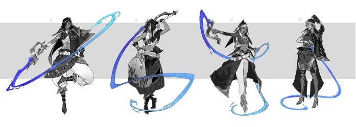 “Nancy给出的第一组概念画里,是一个六条手臂的形象,带着一把更加常见的塔瓦尔弯刀。”首席叙事作者Jared “Carnival Knights” Rosen说道,“但后来我们看到了鞭剑,就突然意识到‘天呐,难道我们还没有使鞭子的英雄吗?肯定有的吧。婕拉算吗?不算,她用的是藤条。那还有谁?’最后发现,一个都没有。”