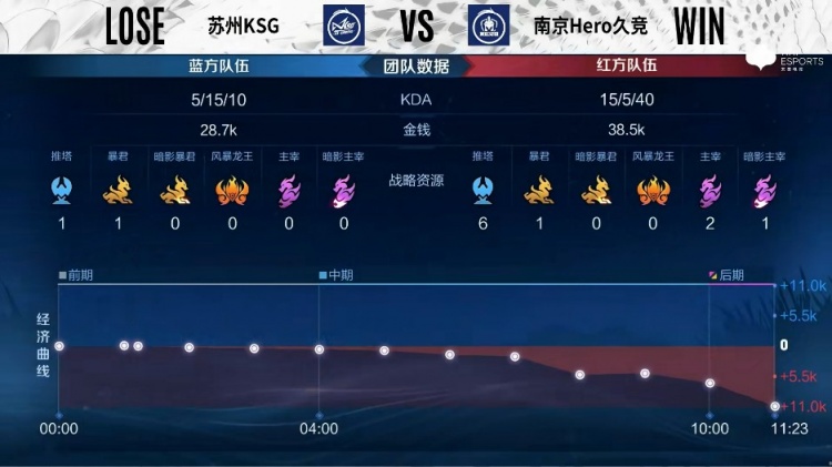 【11:23】吕布大招和弈星大招配合直接开团,Hero打出0换4的团战,曜想守塔被Hero击杀后成功拿下胜利!