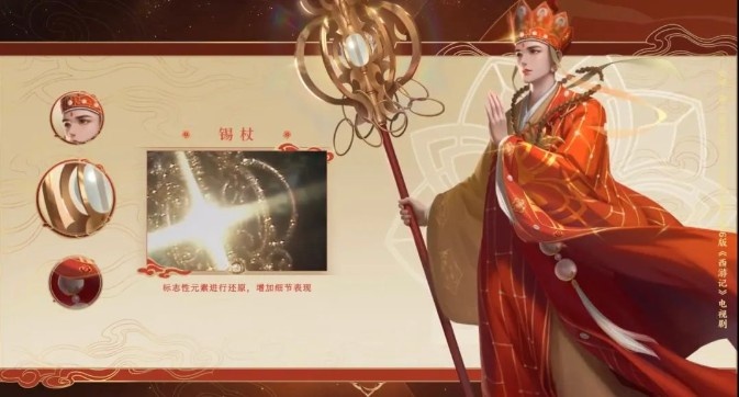 一技能特效借鉴了86版西游记中,唐三藏赠与孙悟空嵌金帽子变为紧箍的经典桥段。