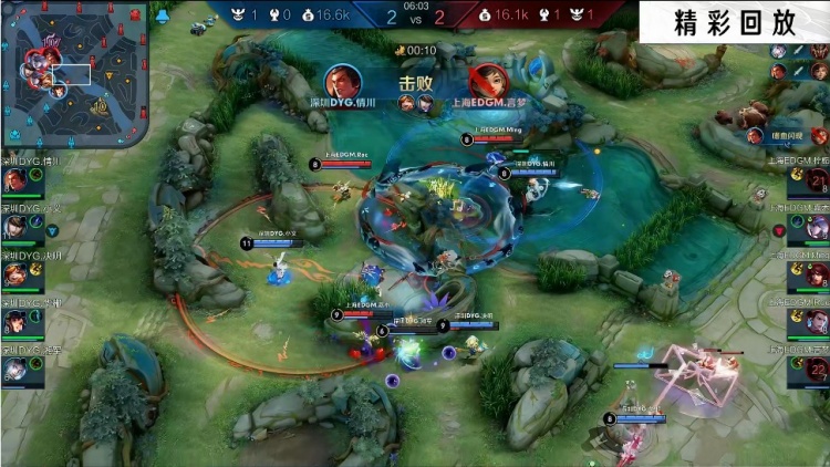 【6:00】EDG入侵蓝区,赵云大招扎两个,吕布跳大一刀收掉蒙恬和桑启,DYG追击沈梦溪把周瑜也炸死。