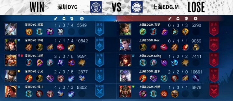 直播吧7月26日讯 今日KPL王者荣耀夏季赛常规赛A/B组卡位赛开张,率先开打的是深圳DYG对阵上海EDG.M。第二轮常规赛深圳DYG状态不佳位列A组第六,而上海EDG.M在B组发挥神勇拿到B组第一。谁能战胜对手参加第三轮的常规赛保留季后赛希望。