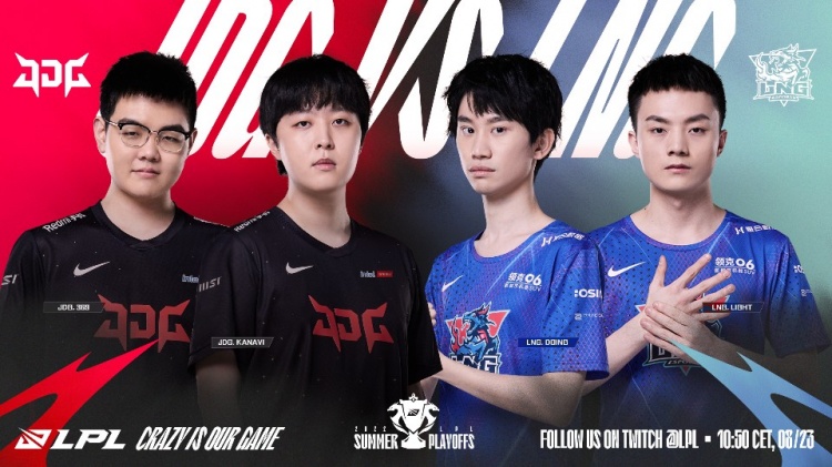 直播吧8月23日讯,2022LPL夏季赛季后赛继续进行,由JDG对阵LNG,本场比赛的胜者将晋级胜者组决赛对阵TES,而败者则落入败者组面对EDG。