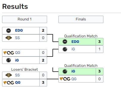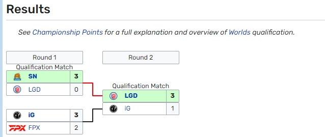 2015年:IG以2-0战胜QG,胜者组不敌EDG,随后在以3-0横扫QG,成功晋级世界赛
