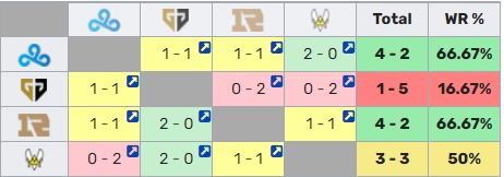 EDG与RNG携手晋级世界赛,EDG与H2K、AHQ、INTZ一同分到C组,RNG与SSG、TSM、SPY一同分到D组。小组赛EDG双杀AHQ但与另两位对手1-1战平最终小组第二晋级淘汰赛,而RNG小组赛遭SSG双杀后又与SPY 1-1战平最终凭借2-0TSM的胜负关系惊险晋级淘汰赛。