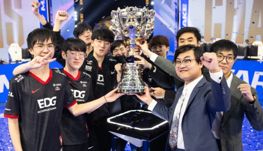 四分之一决赛,遗憾EDG与RNG提前相遇内战,最终EDG凭借中野的出色状态3-2击败RNG晋级,后续EDG越战越勇一路“登神”长阶连斩LCK两员大将,最后圆满自己七年梦想问鼎世界,拿下属于LPL赛区的第三个冠军。