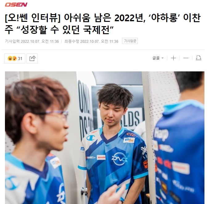 在比赛结束后,接受OSEN采访的Yaharong选手难掩遗憾。对于职业生涯首届全球总决赛,Yaharong选手表示“这是我人生中最重要的瞬间,我集中于所有的操作,输掉比赛后遗憾之情涌上心头。”