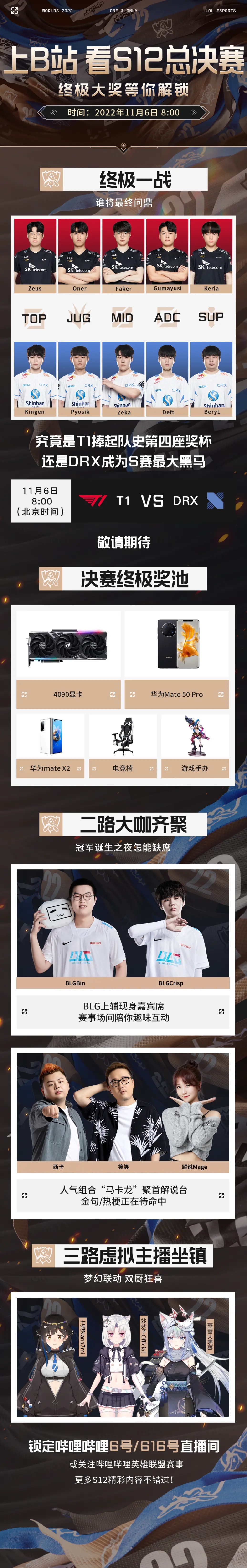【观赛有礼】上B站观看S12直播,6号直播间天选抽奖,华为Mate 50 Pro、火神RTX4090显卡等好礼你来抽
