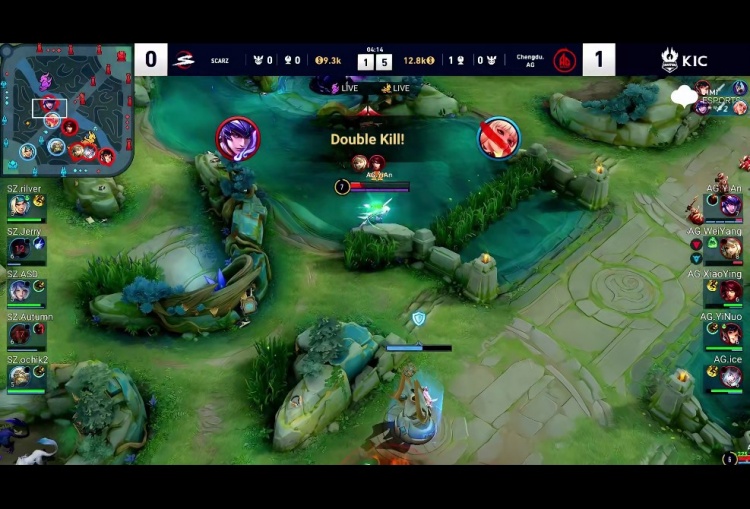 【6:00】中路镜蹲草想要单杀镜,但是周瑜背后有人,镜被AG收下!