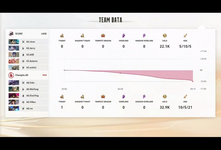 【9:00】AG抱团推进,虽然周瑜被换掉但是AG的马超输出爆炸带领队友4打4成功推掉水晶赢下比赛!