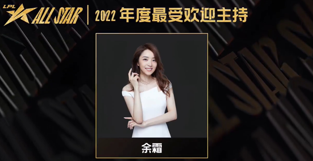 直播吧12月10日讯 2022年LPL全明星周末-年度颁奖盛典正在进行,最受欢迎主持,由余霜获得。