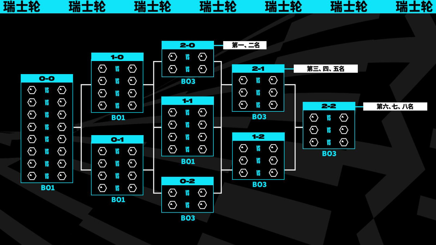 总的来说,瑞士轮赛制阶段总共有33场比赛,其中20场为单场胜负,13场为三局两胜制。