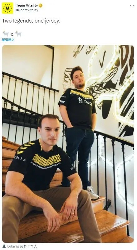 直播吧1月11日讯 今日VIT战队官推发布了英雄联盟分部选手Perkz以及CSGO分部选手ZywOo身穿新队服的合照,并配文:“两位传奇,一件新队服。”