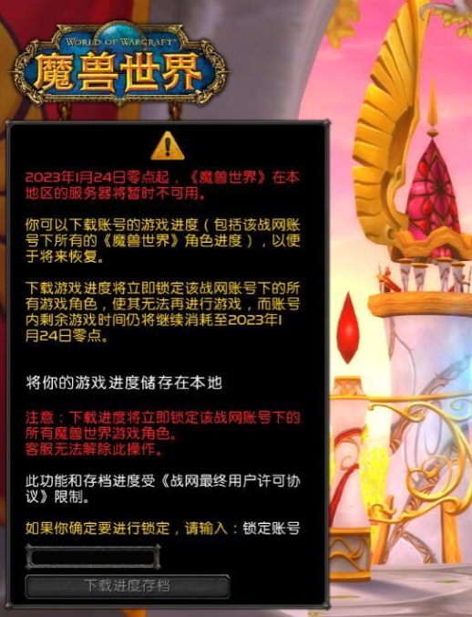 由于网易与暴雪将结束合作,旗下游戏将于2023年1月24日终止服务,暴雪此前宣布,《魔兽世界》国服关服后,玩家需要自行将游戏数据保存到本地,以备那可能存在的重启之日,也被玩家戏称为“电子骨灰盒”。