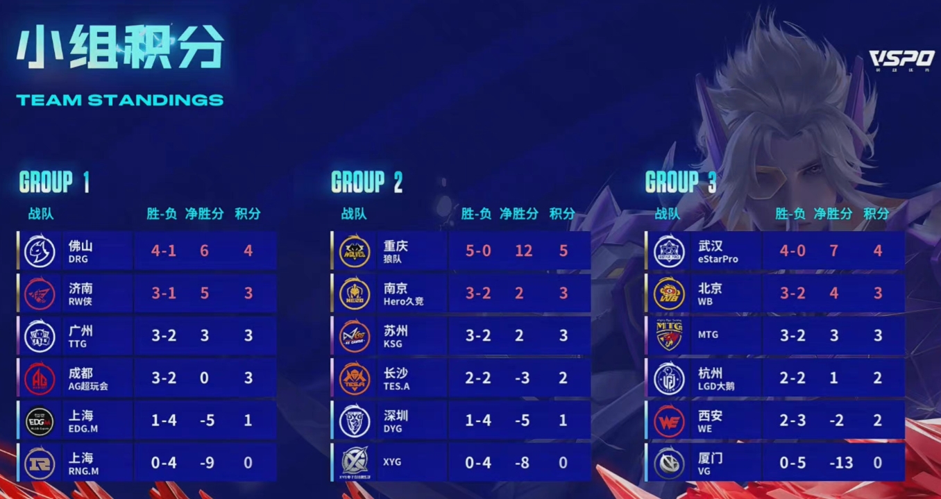 KPL各组积分排名:狼队&武汉eStarPro一骑绝尘 均未尝一败
