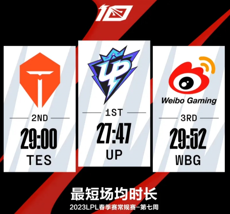 >真就18年iG魂?TES、WBG、UP三队成为上周场均时长最短的战队