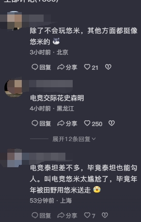 直播吧3月13日讯 今日英雄联盟赛事官方在抖音平台介绍Ming选手,除了常规的荣誉盘点外,官方在最后称呼Ming选手为:电竞悠米史森明,嘻嘻嘻嘻嘻。