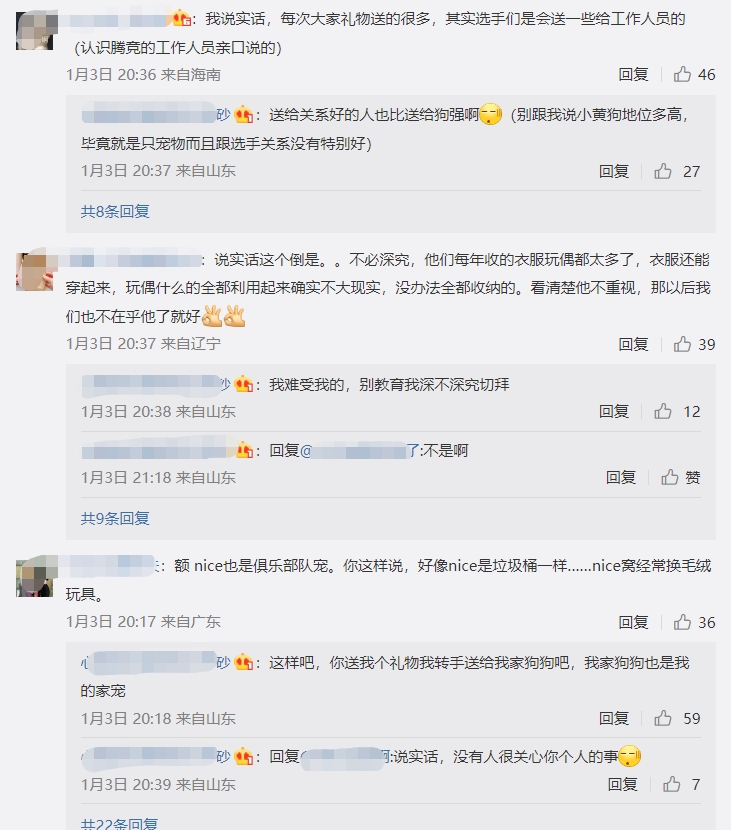 虽然不指望选手能够尺帝似的把小玩偶挂满包包,但看到这种用心被转手扔掉的剧情心里真的很难受。