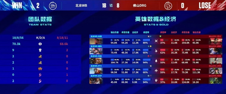 第一局:🎮KPL:乔夫组合线上炸穿 北京WB 1-0 佛山DRG