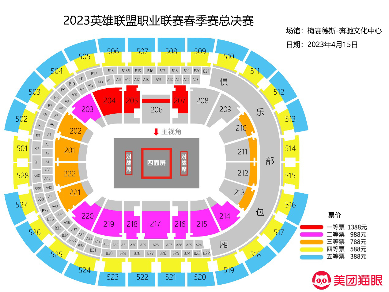 2023PL春决座位分布情况,388的五等票只能够坐到最外围