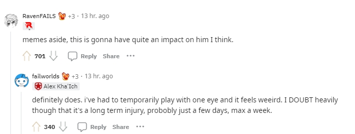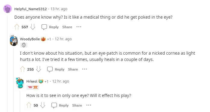 直播月2日讯 昨日Keria开直播时透露自己左眼炎症受伤,戴上眼罩。该消息引发欧美论坛Reddit网友的讨论。