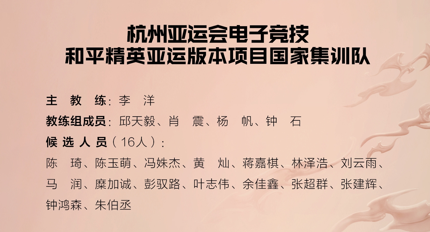 直播吧5月5日讯 2023杭州亚运会电竞项目-和平精英 集训大名单及主教练公布,内容如下: