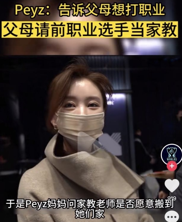 图为Peyz选手的妈妈,此前为了让他更好的提升能力,还将前职业选手请到家里
