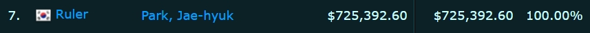 在英雄联盟奖金前100位中,JDG下路选手Ruler以72.5万美元(约合人民币511万左右)依旧位列第七位,名次没有变动。