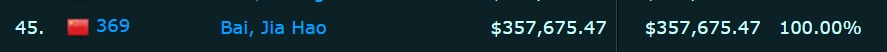 JDG上路选手369以35.7万美元(约合人民币252万左右)位列第45名,相较于春季赛结束,排名提升了5名。