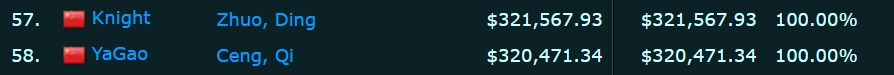 决赛双方中单选手knight成功超越Yagao以32.1万美元(约合人民币226万左右)位列第57位;而Yagao则以32万美元(约合人民币225万左右)位列58名,相较于春季赛结束,两位选手提升了两名。