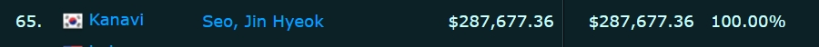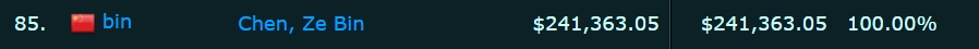BLG上单选手Bin以24.1万美元(约合人民币170万左右)位列第85位,名次没有变动。