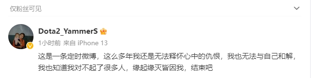今天下午DOTA2官方解说Yammers发布了一条定时微博,内容中表示自己因为抑郁症选择自杀,具体说明了自己小时候的家庭和遭遇的被霸凌经历。