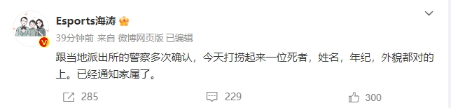 微博发出后DOTA2圈内多位知名博主Ams、BBC、海涛等人都紧急联系了本人和警方,最后海涛发布了微博,表示和当地派出所的警方确认后,Yammers已经确认系抑郁症自杀。