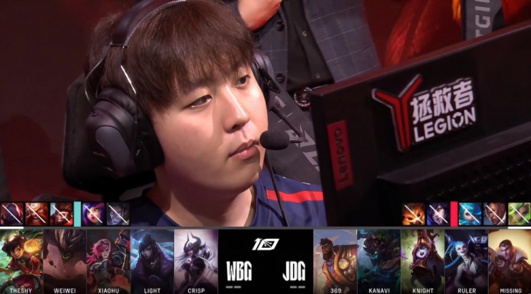 红色方JDG:369奎桑提、Kanavi茂凯、knight杰斯、ruler金克丝、Missing璐璐