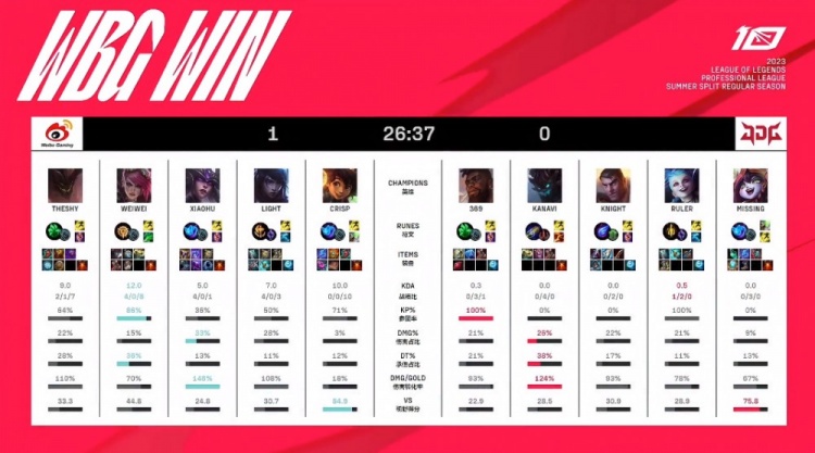 直播吧6月1日讯 LPL2023夏季赛第一周第四日的第二场比赛,由WBG对阵JDG。