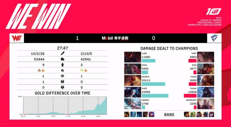 WE:上单Cube、打野Heng、中单Shanks、下路Hope、辅助Iwandy