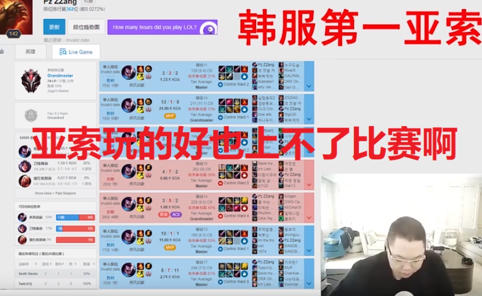 此前主播PDD曾于韩一索接触,欲让其在职业路上有一席之地。但无奈其本人英雄池太过浅显,至今未有下文。(正手亚索,反手永恩)