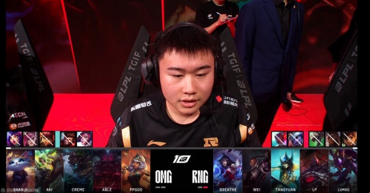 RNG:上单Breathe、打野Wei、中单Tangyuan、下路LP、辅助LvMao