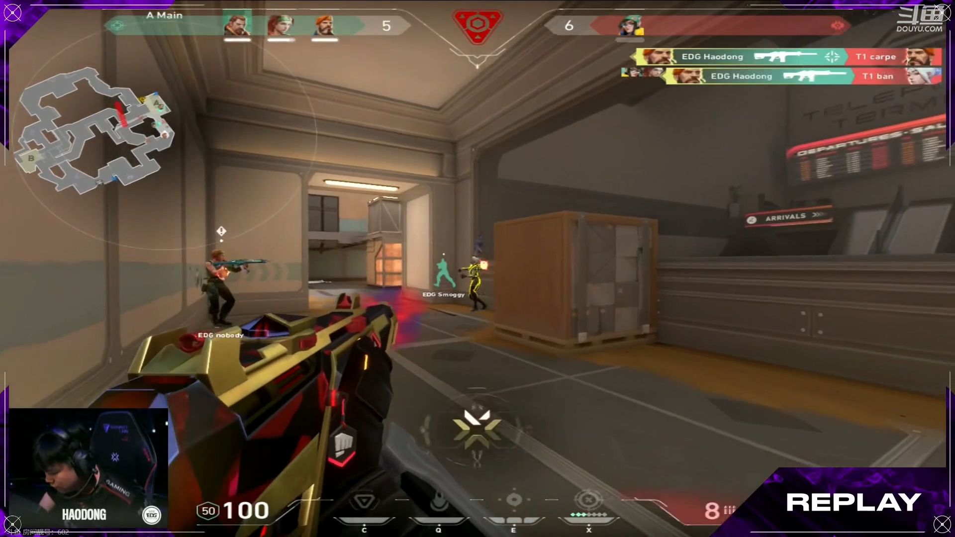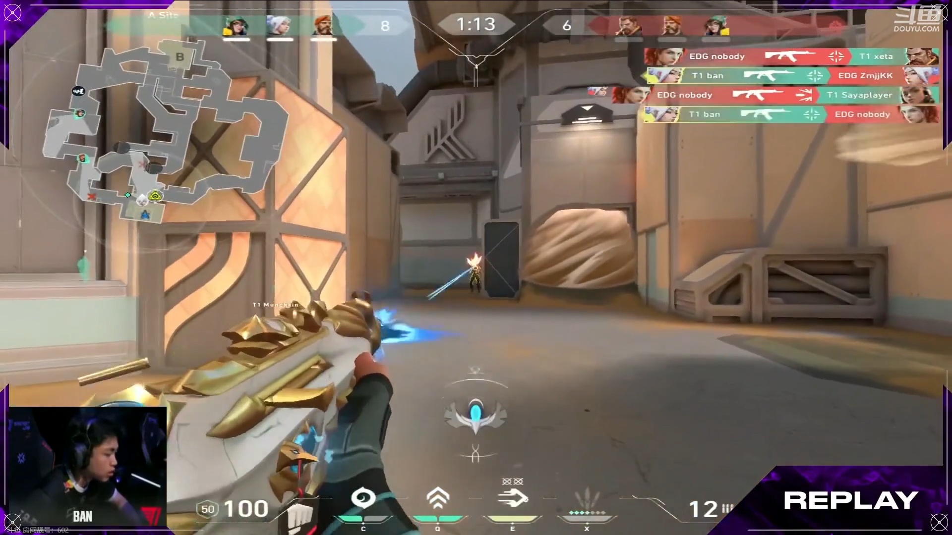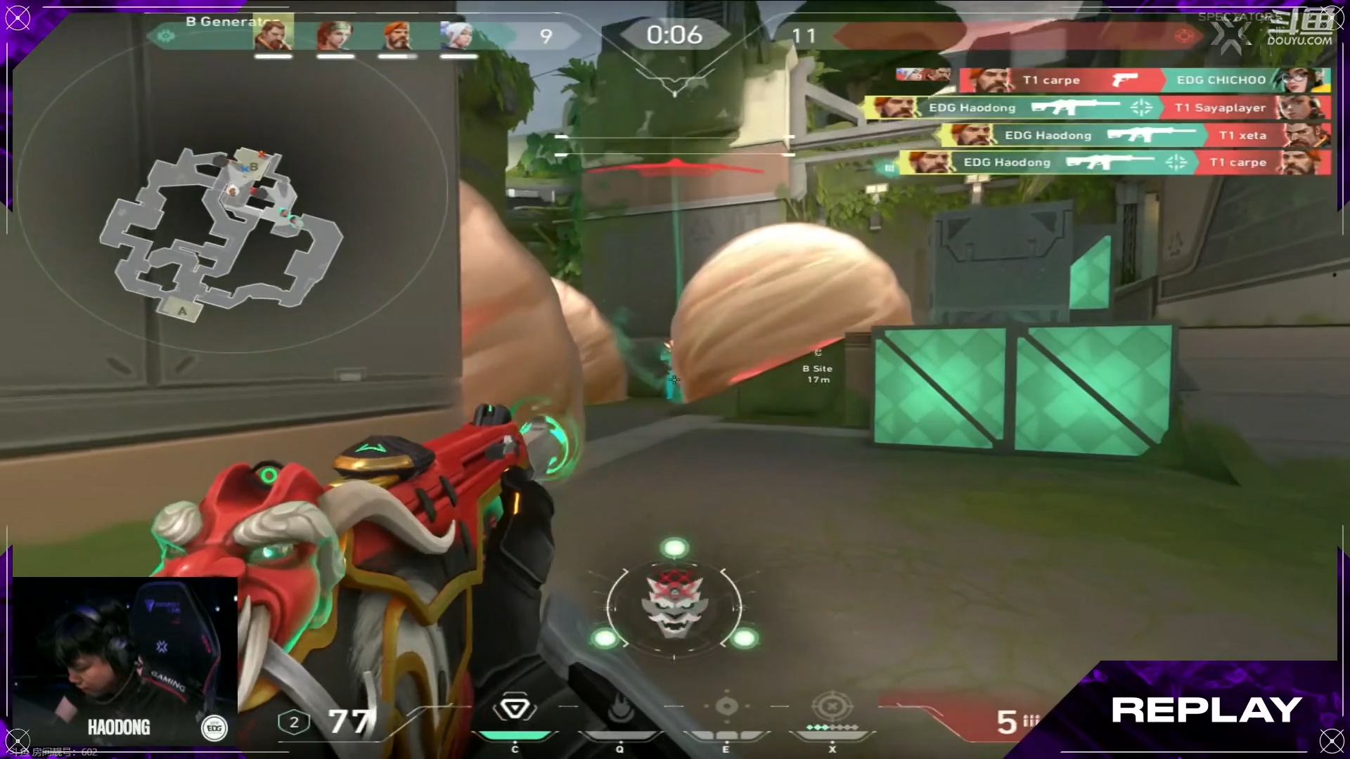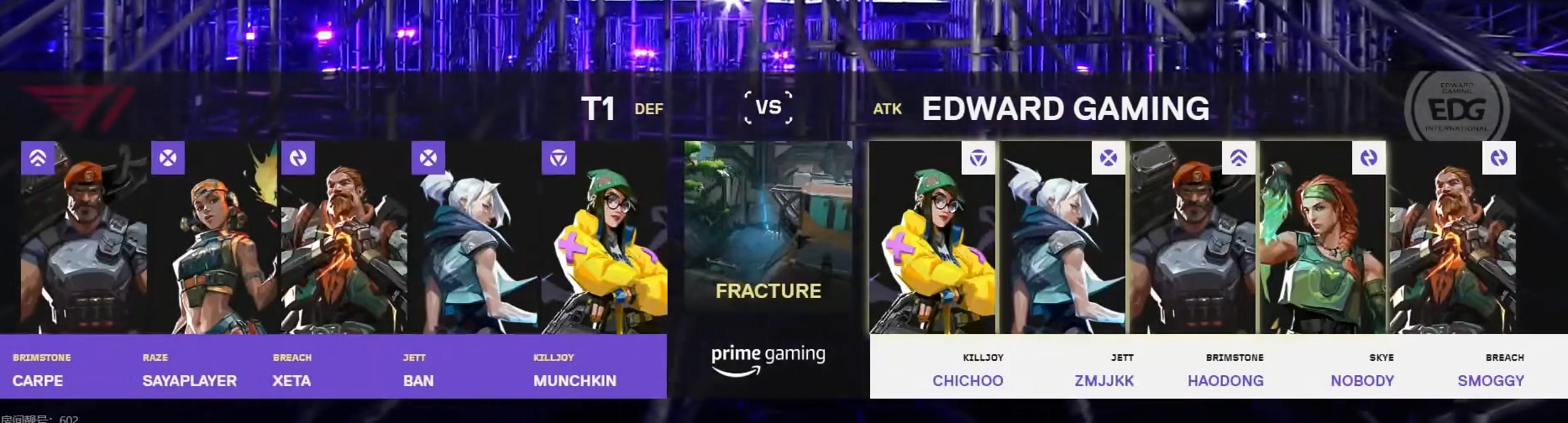 【第三局】长枪局T1继续二三控图,双方二换二T1进A点下包,EDG回防失败输掉关键局,T1 9-6 EDG。